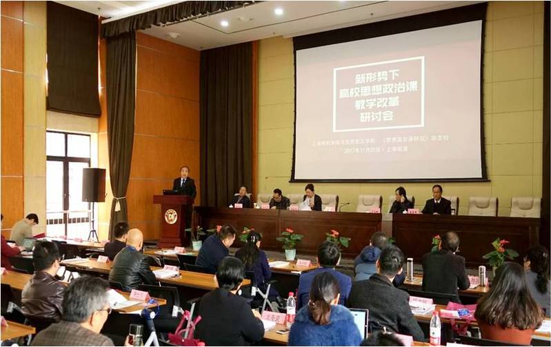 20171125日,学校在行政楼330会议室召开“新形势下高校思想政治理论课教学改革研讨会”。会议由校长胡晟致辞,副校长杨若凡主持,来自复旦大学、同济大学、华东师范大学、上海海洋大学、上海海事大学、上海第二工业大学、上海电力学院、上海政法学院、上海商学院、上海健康医学院、上海立信会计金融学院、上海体育学院、上海建桥学院等高校的专家学者参加研讨。会议由我校beat365中文官网主办承办,华东师范大学政治学系《思想政治课研究》杂志协办。上海市教委德育中心副主任宗爱东、上海思政研究会秘书长卢天琳、我校教务处长刘军、beat365中文官网院长何小刚、beat365中文官网直属党支部书记顾建伟出席会议,beat365中文官网全体教师参加会议。