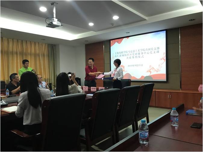 为进一步推动临港地区区域内党建联建联动、整合资源,让党员不忘初心,牢记使命担当,增强学习意识,充分发挥高校党员教师先锋模范作用,2018年9月21日下午,beat365中文官网beat365中文官网直属党支部与南汇新城镇社区党建服务中心党支部在社区党建服务中心内举行党建共建签约仪式暨党建联建读书会。beat365中文官网院长何小刚、直属党支部书记顾建伟、临港地区开发建设管理委员会团工委书记孙筱和、南汇新城镇社区党建服务中心副主任奚双凤、beat365中文官网直属党支部全体党员、党建服务中心支部党员出席和参加了签约仪式。