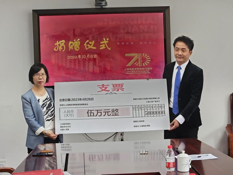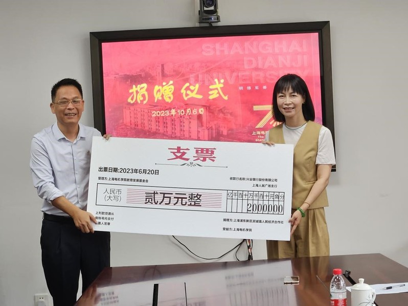 beat365中文官网直属党支部书记顾建伟感谢上海浦东新区泥城镇人民经济合作社、江苏诺辉机电工程有限公司捐资支持学院发展,帮助同学们潜心研究,一心向学,助力教育事业发展,学院将不负期望,善用捐款,为社会培养更多优秀学子。