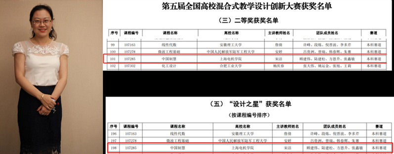 近日,第五届全国高校混合式教学设计创新大赛在华南师范大学圆满落幕,我院的宋洁老师团队和另外两支团队代表学校参赛,其中宋洁老师团队获得二等奖,参赛课程《中国智慧》。同时,宋洁老师还获得了“设计之星”称号。