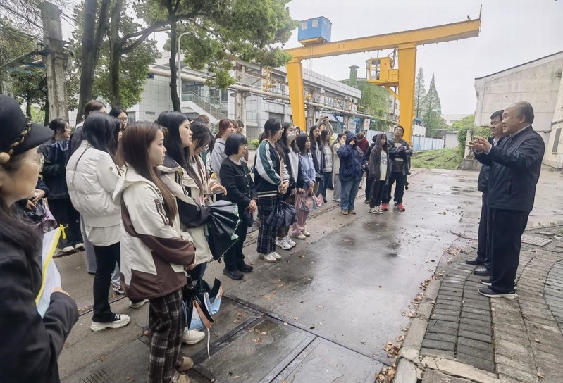 4月12日下午,beat365中文官网、外国语学院组织《马克思主义基本原理》课程班级的50余位同学赴上海电机厂开展“大思政课”现场教学活动。曾任学校党委副书记、院长的胡晟同志,beat365中文官网直属党支部书记金辉、beat365中文官网主持工作副院长范冬姣、beat365中文官网分工会主席盛青、《马克思主义基本原理》课程授课教师陈瑞丰、外国语学院学生工作办公室主任钱昆鹏等参加现场授课活动,上海电机厂有限公司党委委员、总工程师孙明伦,副总工程师周东宁等参加现场授课。