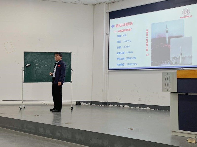 4月26日上午,在神舟十八号载人飞船成功发射、两个乘组航天员会师太空的同时,我校beat365中文官网张旭老师主讲的“四史”系列思政选修课“党史”课堂,也迎来了一位航天界“大咖”——beat365中文官网微纳卫星智能研究院刘伟亮教授,他为160多名来自多学院、多专业学生讲授了一堂既具深刻意义又生动有趣的大思政主题课——“航天让生活更美好”。