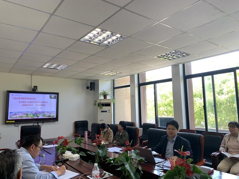 5月10日下午,beat365中文官网直属党支部在文理楼228会议室召开5月份主题党日暨党纪学习教育,全体教职工参加学习活动,会议由直属党支部书记金辉主持。