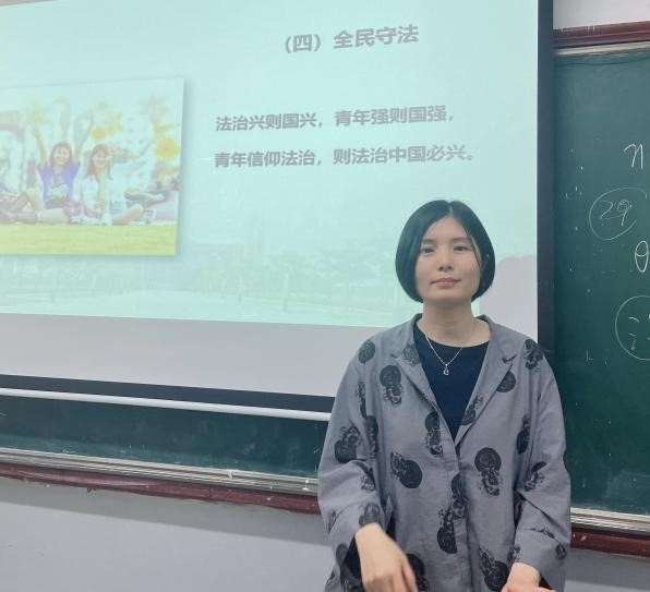 5月10日,宣讲团成员罗薇副教授赴高职学院为学生入党积极分子做《对党忠诚握紧戒尺不负使命担当》的党纪学习教育宣讲。她表示习近平法治思想是习近平新时代中国特色社会主义思想的组成部分,是全面依法治国的根本遵循和行动指南,它深刻回答了新时代为什么要实行全面依法治国、怎样实行全面依法治国等一系列重大问题,其核心要义集中体现在“十一个坚持”上。她结合实例,号召学生入党积极分子要学习践行习近平法治思想,成为法治的忠实崇尚者、自觉遵守者、坚定捍卫者。