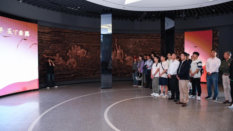 师生一行首先参观了红色泥城主题馆,主题馆由革命摇篮、血染丹心、火种传扬、迎接解放、凯歌行进五个篇章组成,通过激光投影、全息成像、虚拟现实等多媒体技术重现历史,见证烽火岁月。在讲解员的带领下,大家观看文献资料、历史图片、珍贵文物、革命影像,追忆战火纷飞的红色岁月,感悟先辈们的革命理想、不屈不挠的斗争精神。
