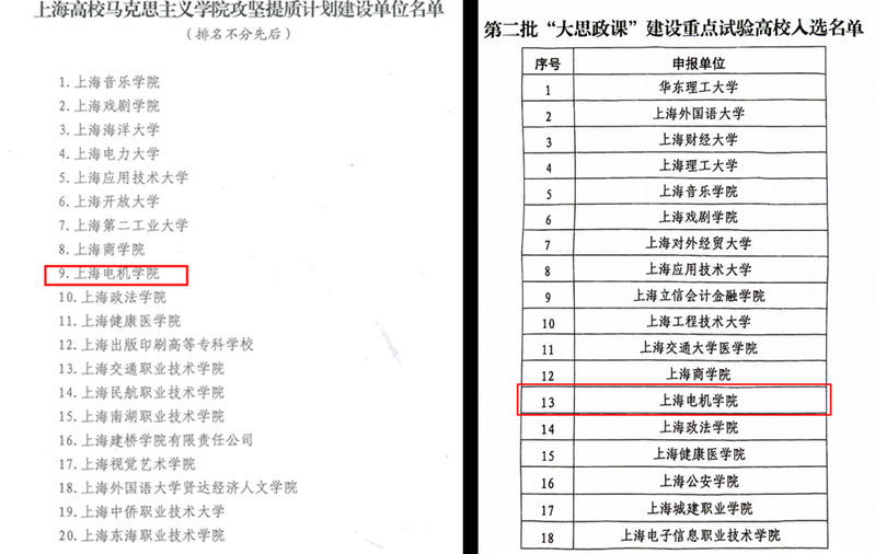 为进一步推进上海市高校beat365中文官网建设,近期,中共上海市教育卫生工作委员会、上海市教育委员会分别组织开展了“上海高校beat365中文官网攻坚提质计划”与“第二批‘大思政课’建设整体试验区、重点试验区(高校)遴选工作”评审,我校顺利获批以上两个项目。